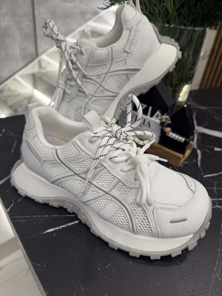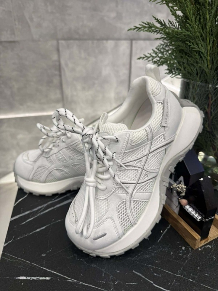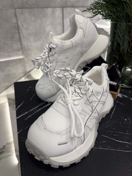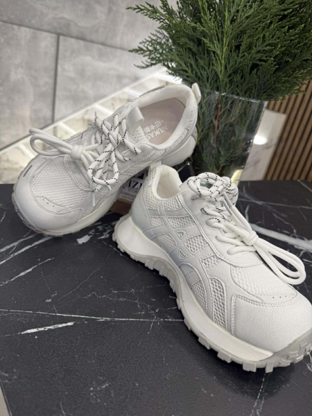 Обувки в бял цвят с декорация от текстил и естествена кожа.