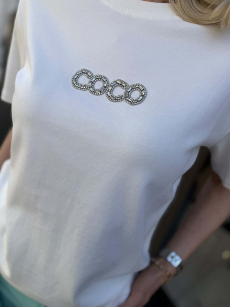 Тениска със свободна кройка от памучно трико в бял цвят. Универсален размер подходящ за S, M, L.