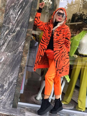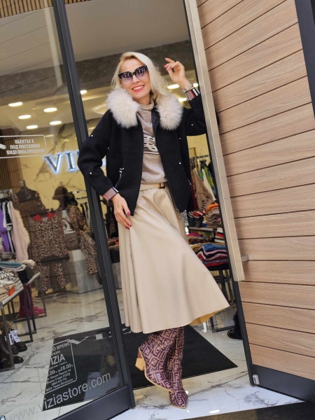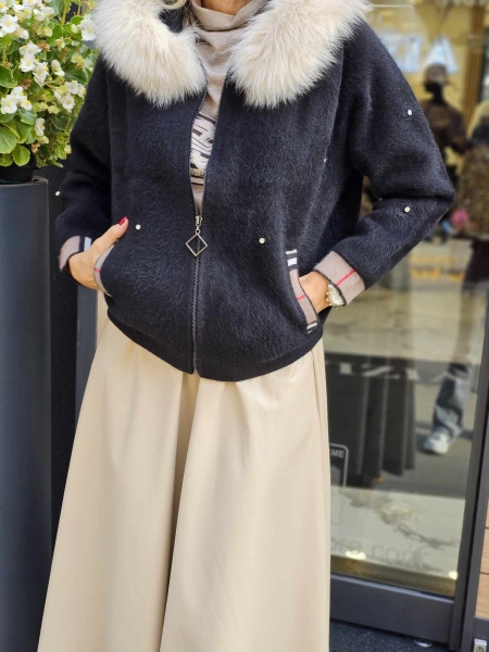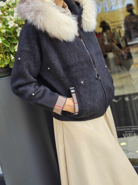Къса жилетка тип яке с качулка от естествен косъм.Модела се закопчава с цип и има странични джобове.Има и подплата.Размерът е универсален и е подходящ за S,M,L.